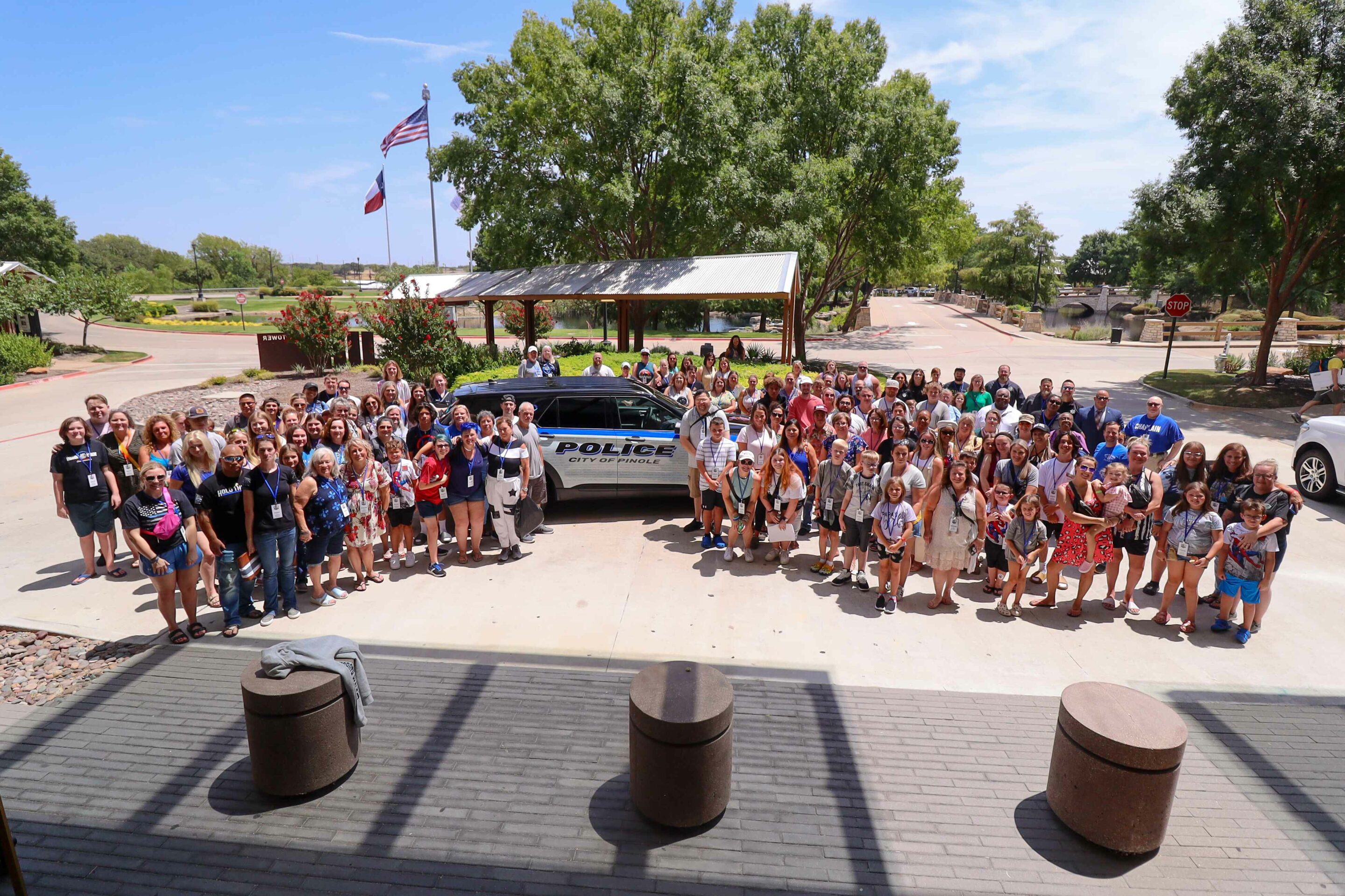 Chief Gang and his awesome team drove this patrol car over 25 hours to Texas all the way from the Pinole Police Department in California just so they could be there in person for these families. Chief Gang spoke about the importance of mental health among first responders and then invited family members to look around, find their loved one’s name, and take photos.